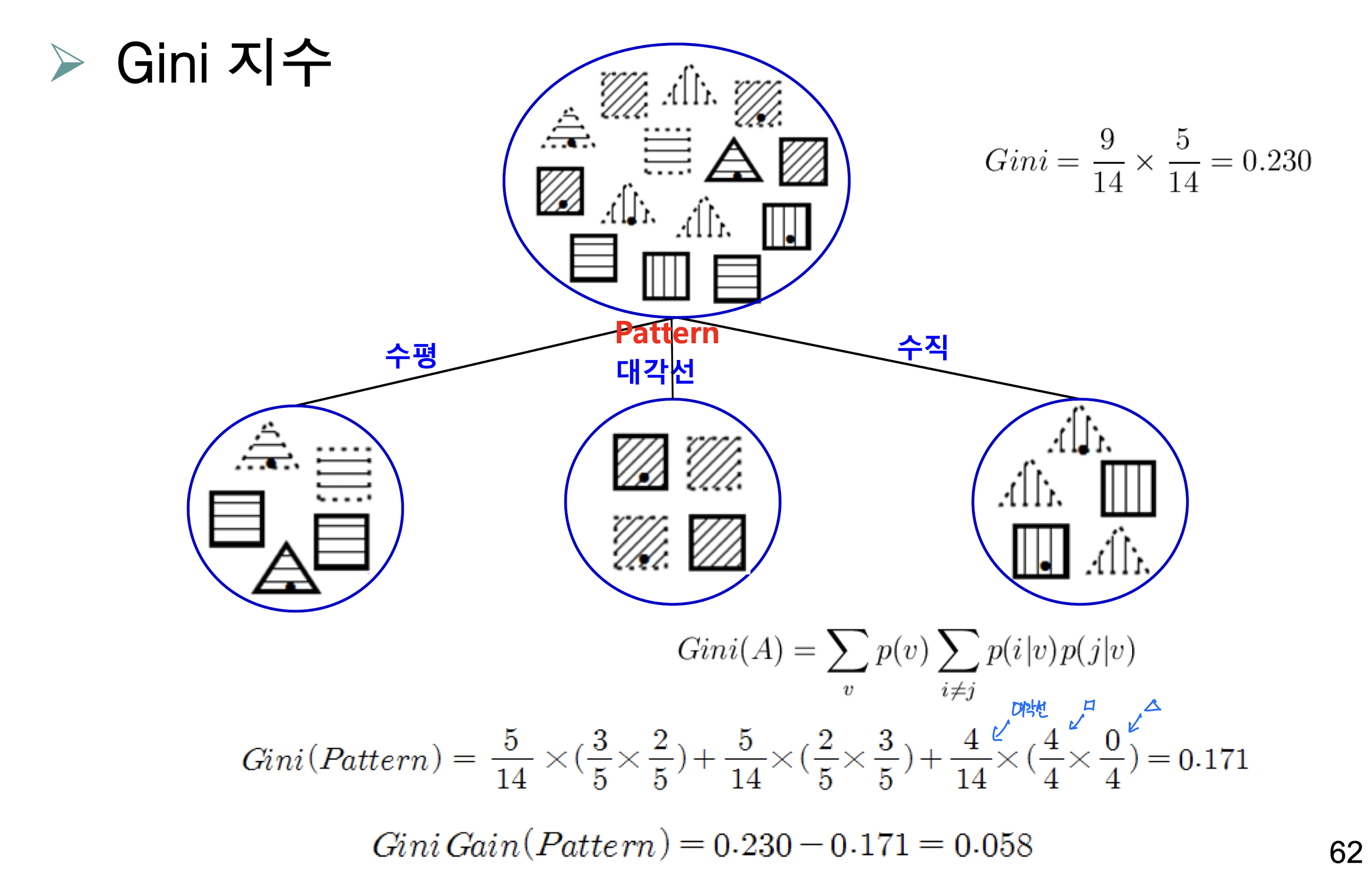 그 다음 지니 지수인데요, 그냥 집단 안에서 속성값을 부류라고 생각하고..