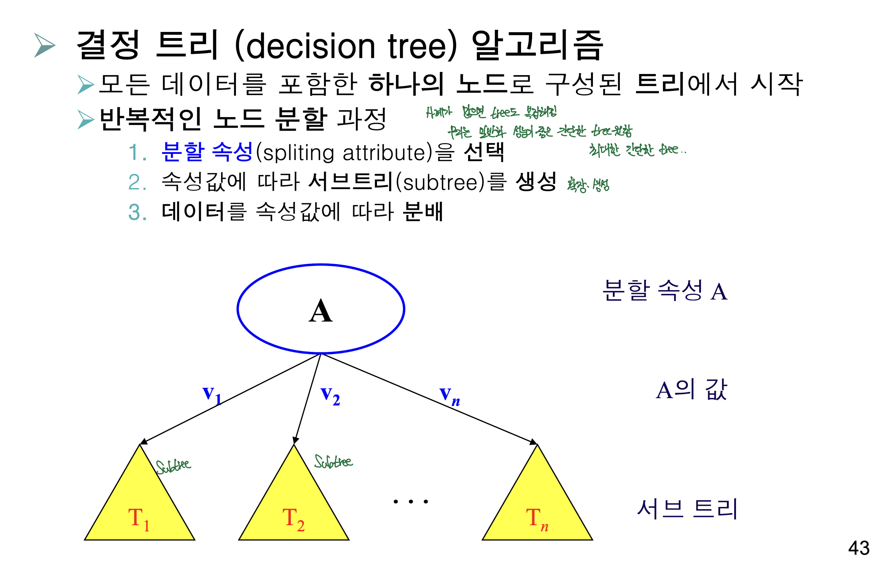 어떤 기준에 따라 서브트리를 생성하고, 그게 우수한 분할 속성이었는지? 를 판단하는 지표인데요,