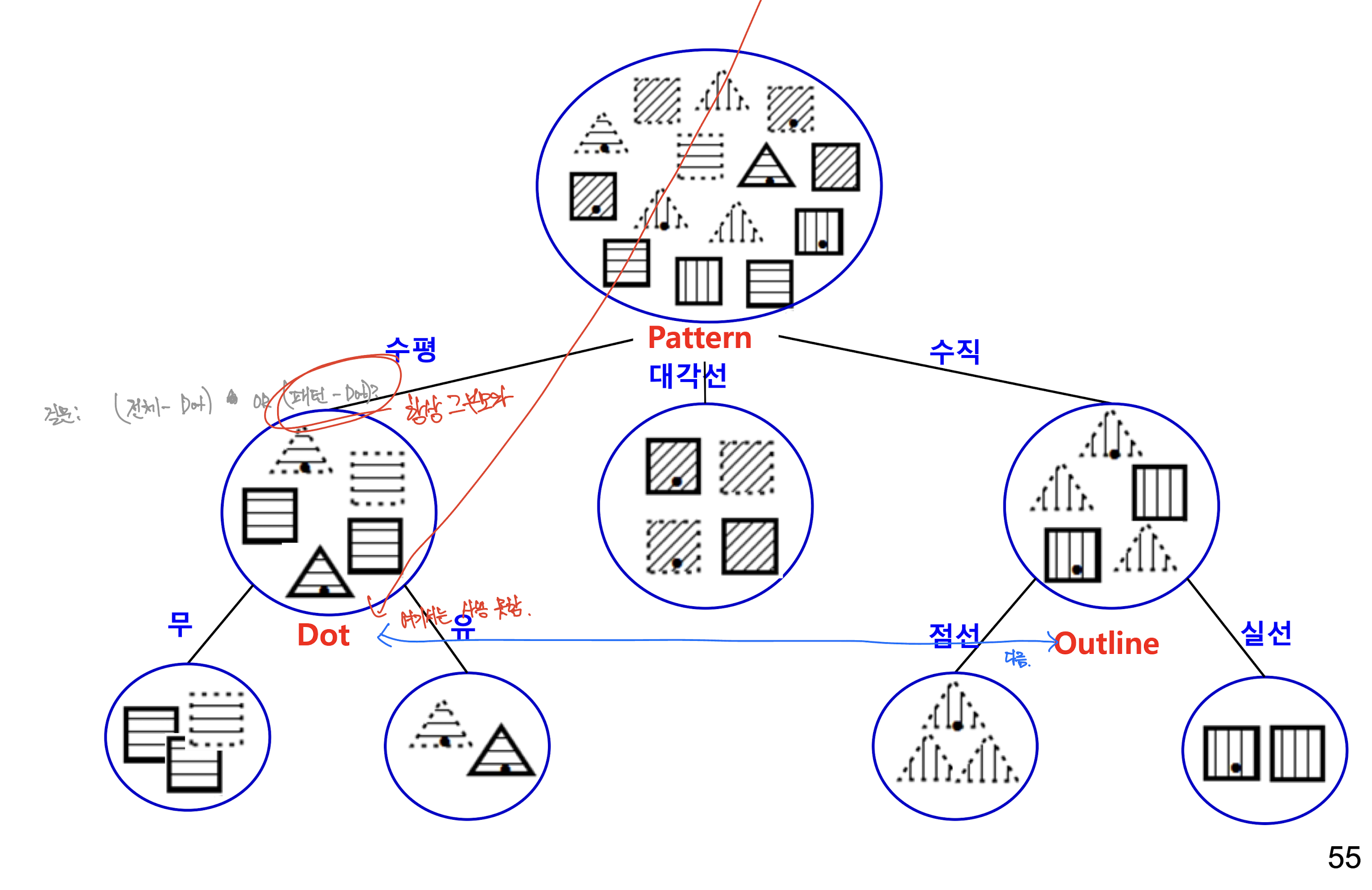 가령, 원본 데이터가 저렇고, 속성(패턴)에 따라 서브트리를 생성하면,